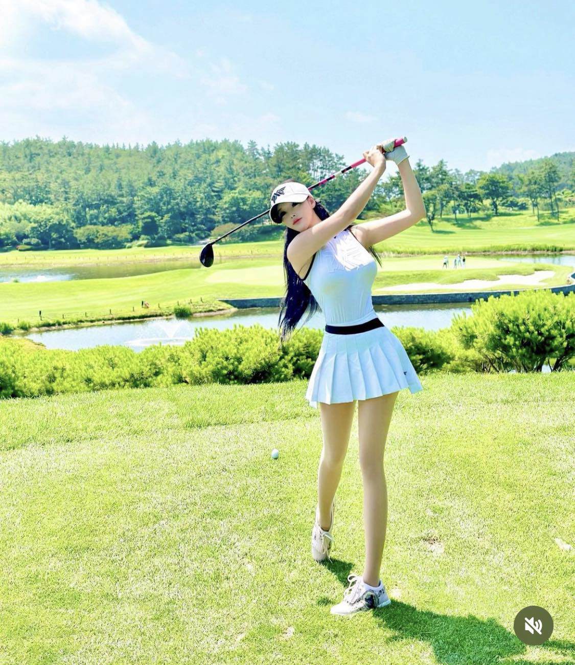 Seo Yoo A kết thân với bộ môn golf giữ dáng. Ấn tượng nhất chính là những outfit điệu đà, thời thượng của cô trên sân chơi "nhà giàu" bao gồm váy ngắn, áo tone sur tone. Đa phần Seo Yoo A đều lựa chọn chân váy ngắn, có đường cắt xẻ chừng mực, tinh tế.