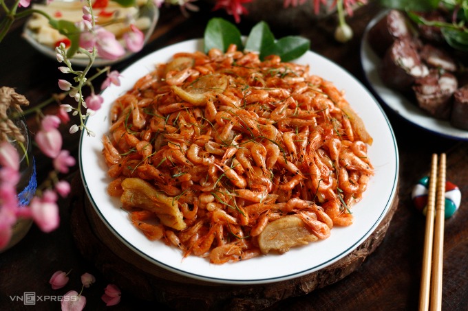 Rang lửa 2: Cho 2-3 thìa canh mỡ lợn cùng hành khô thái lát mỏng vào chảo tép, đảo đều cho dậy mùi thơm. Hạ lửa nhỏ vừa, nêm gia vị (mắm, muối, đường) cho vừa miệng rồi đảo cho gia vị thấm đều vào tép. Nếu muốn tép giòn hơn thì thêm chút giấm hoặc nước cốt chanh vào lúc này. Đây cũng là bí quyết khi làm thịt heo quay hoặc rán nem muốn giòn quét chút nước cốt chanh lên bì hoặc bánh đa nem. Khi tép bóng giòn, đượm màu đượm vị thêm tóp mỡ để món ăn thêm phần hấp dẫn và vị béo ngậy. Cuối cùng rắc thêm lá chanh thái chỉ là được.