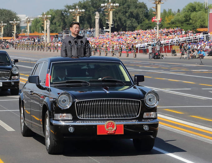 Mẫu Hồng Kỳ L9 limousine chở Chủ tịch Tập Cận Bình tại lễ duyệt binh kỷ niệm 70 năm kết thúc Thế chiến II ở châu Á, năm 2015. Ảnh: Hongqi