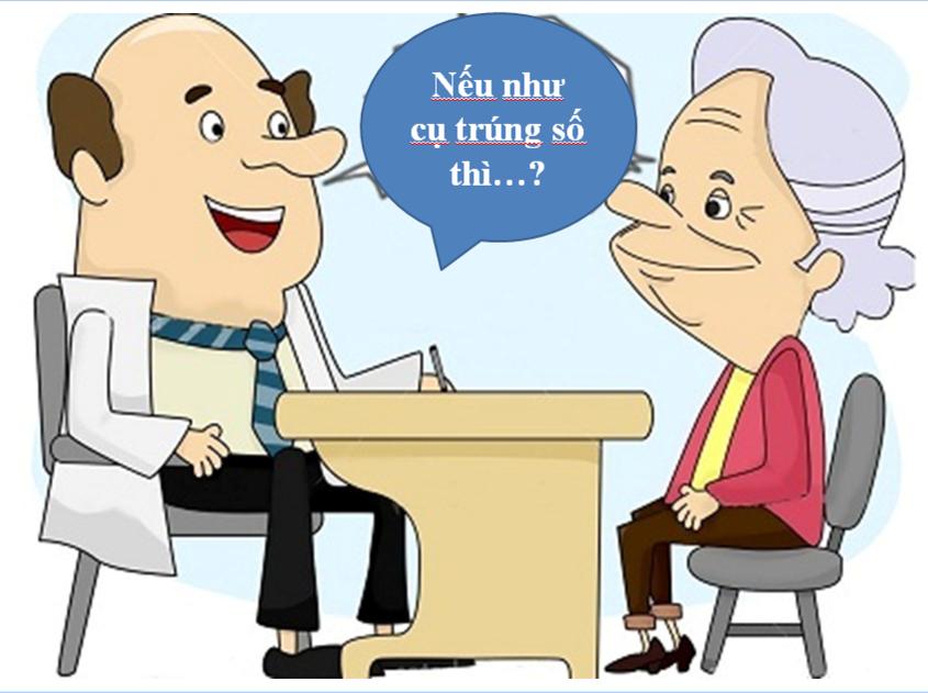 – Và cứ thế tiếp diễn cho đến lúc ông bác sĩ tâm lý nhận thấy, cụ già đủ bình tĩnh để nghe tin trúng xổ số độc đắc. Ông nói: “Nếu trúng xổ số 5 tỉ đồng, cụ sẽ làm gì?”