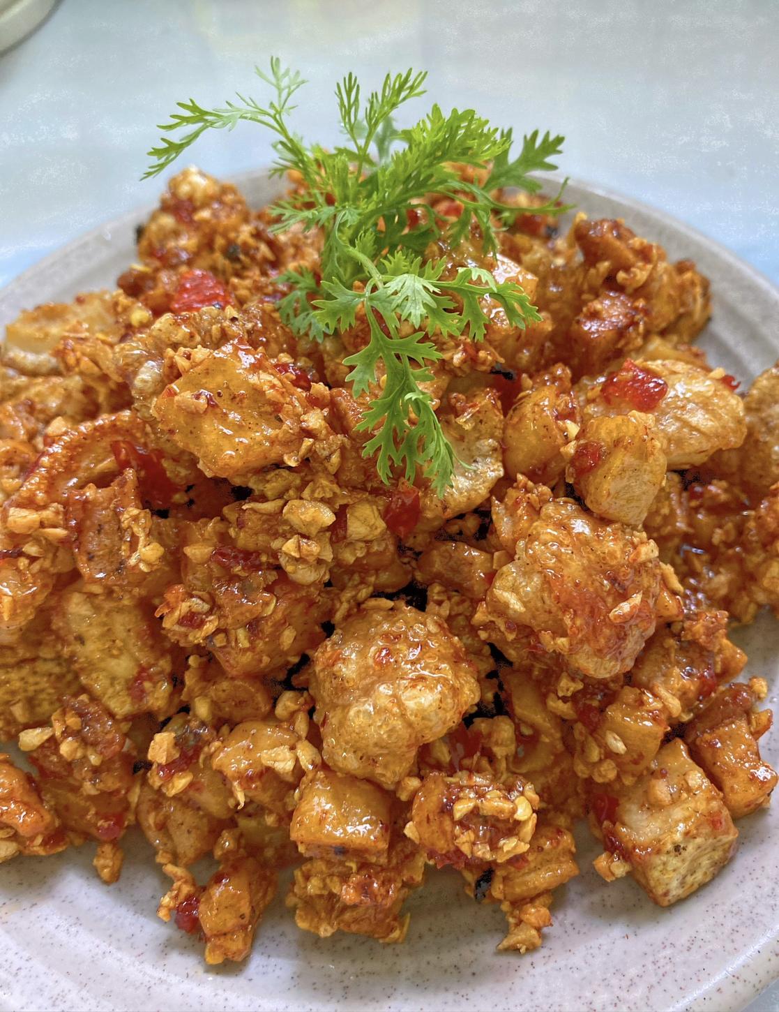 Đặc biệt món tóp mỡ mắm tỏi ớt với phần tóp mỡ ngon khi chiên lên sẽ giòn tan, không ngấm dầu và hoà quyện đậm đà với mắm tỏi ớt.