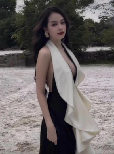 Trên trang cá nhân chính chủ, Nàng hậu Huỳnh Thị Thanh Thủy chia sẻ đoạn video ngắn ghi lại khoảnh khắc tận hưởng yên bình tại một khu nghỉ dưỡng. Bộ cánh cổ chữ V, xẻ sát rốn làm tôn làn da trắng và vóc dáng mảnh mai của người đẹp gen Z. Cô hoàn thiện vẻ quyến rũ với bông tai to bản cùng giày cao gót đồng điệu.