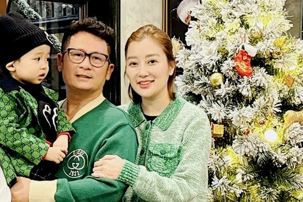 Bằng Kiều cùng vợ trẻ và con trai ở phố hàng Lược ngày giáp Tết. Ảnh: Nam Khánh.