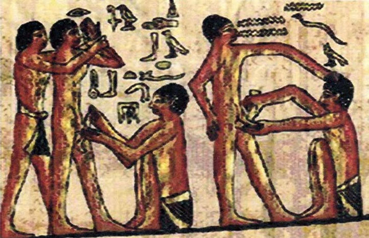 Ví dụ, nếu lấy ruột cừu làm bao, người Ai Cập phải ngâm nó vào nước rồi lột đi lột lại liên tục. Sau khi ruột cừu đã mềm và sạch, họ tiếp tục phải ngâm nó trong một dung dịch kiềm loãng, cứ nửa ngày lại phải lộn một lần.