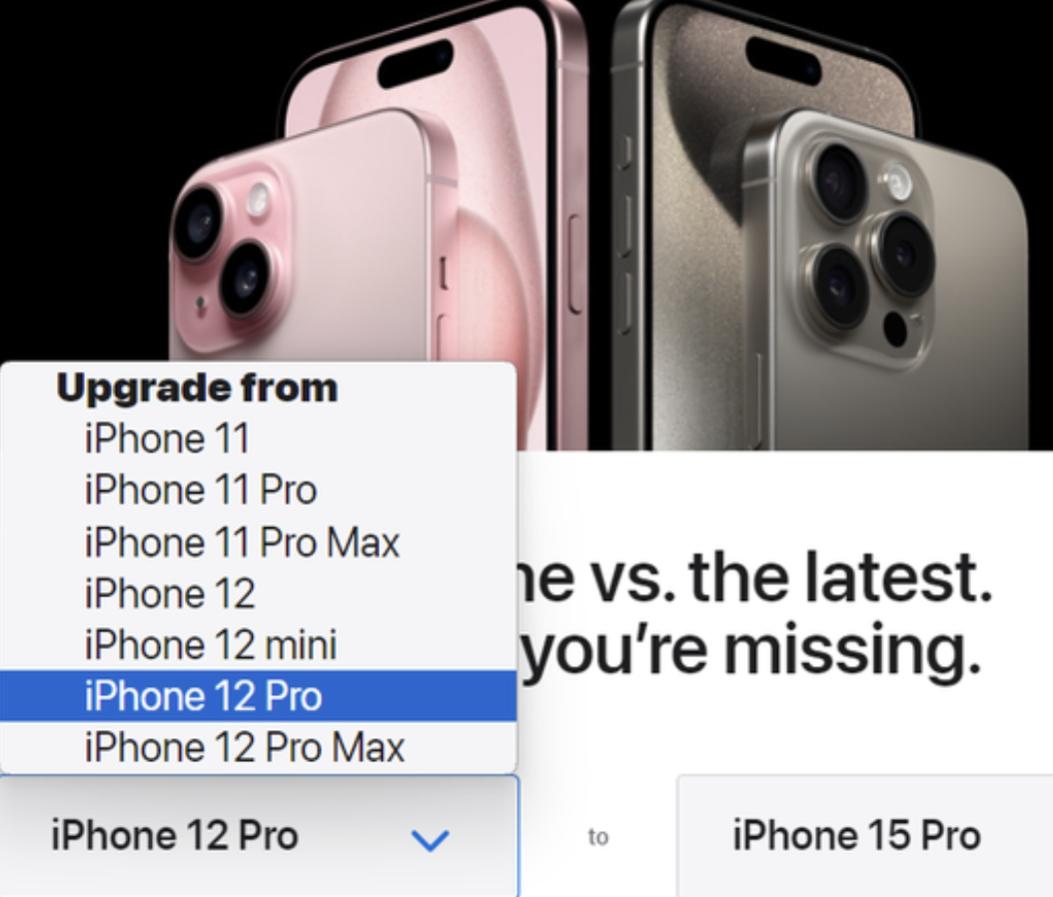 Hóa ra là việc giới hạn các tùy chọn so sánh ở iPhone 11 và 12 cho thấy Apple không nghĩ rằng người dùng iPhone 13 và 14 (thậm chí là các mẫu cũ hơn ví dụ như iPhone X/XR/XS/XS Max) cần phải nâng cấp lên iPhone 15 - ít nhất là ở hiện tại.