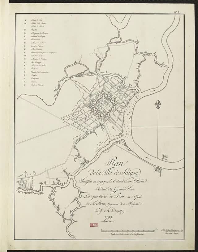 Bản đồ Sài Gòn năm 1795 với thành Bát Quái ở chính giữa do Jean-Marie Dayot vẽ