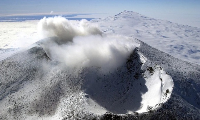 Núi lửa Erebus cao 3.794 m ở Nam Cực phun bụi vàng cùng nhiều loại khí gas mỗi ngày.