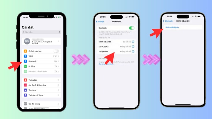 Cách tắt bàn phím Bluetooth trên iPhone cũng vô cùng đơn giản, bạn chỉ cần truy cập Cài đặt > chọn Bluetooth > Nhấn vào bàn phím Bluetooth đang kết nối > Chọn quên thiết bị này.