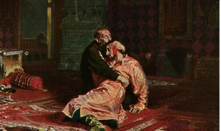 Không những vậy, Sa hoàng Ivan Vasilyevich còn nhẫn tâm ra tay độc ác giết hại con trai khi con dâu ăn mặc hở hang. Cụ thể, sa hoàng này đã ra tay đánh con dâu khiến cô xảy thai. Khi chứng kiến cảnh đó, con trai của sa hoàng Ivan đứng ra bảo vệ vợ nhưng bị bố giết hại. Vài năm sau đó, Ivan khủng khiếp qua đời vì cơn đau tim.