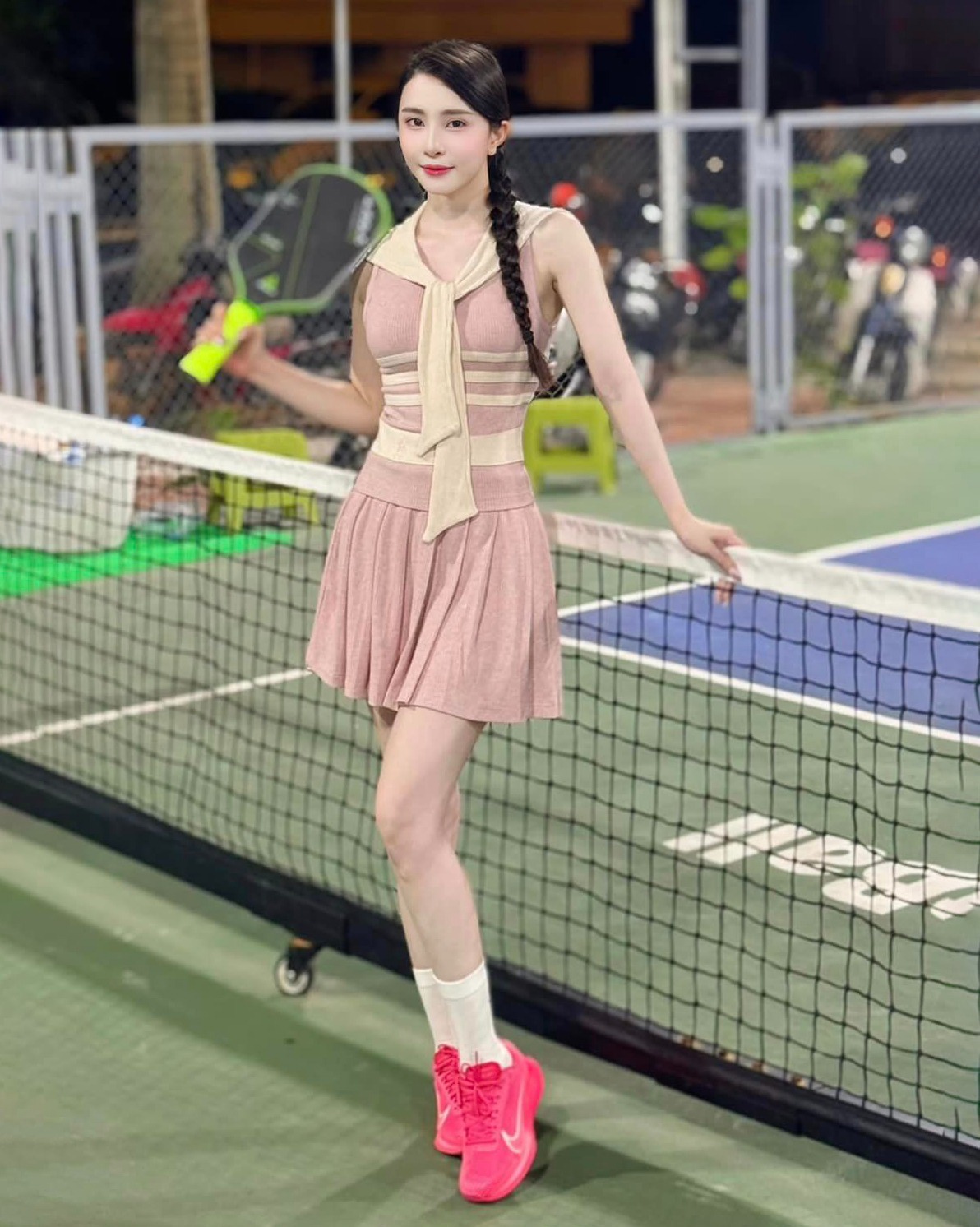 Mỗi lần chơi pickleball, Quỳnh Nga đều tập 'mướt mồ hôi'. Bên cạnh đó, cô tranh thủ chụp hình khoe outfit.