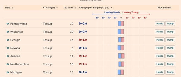 Như vậy c̣n 93 ghế trong 7 bang chiến địa sẽ đặc biệt quan trọng. Để trở thành tổng thống cần có 270 ghế.
