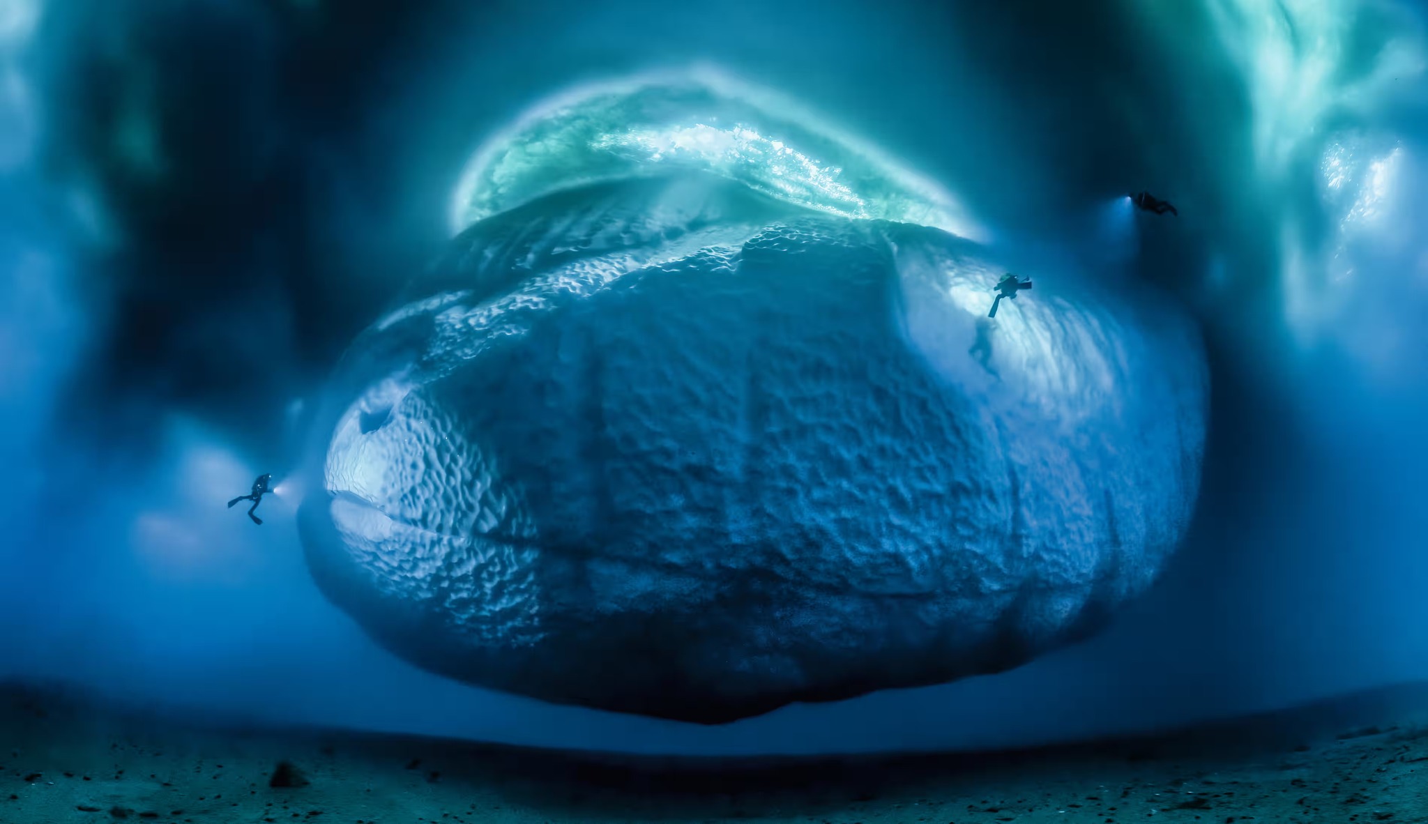 Đấy không phải là một con quái vật nào đó từ thời cổ đại đang sống dưới biển sâu. Đấy chỉ là phần ch́m một khối băng nhỏ ở Nam Cực trong một bức ảnh của nhà sinh học đại dương người Pháp Laurent Ballesta, cũng là một người rất say mê chụp ảnh dưới đáy đại dương. Anh bảo, người đă truyền cảm hứng cho anh về đại dương là nhà đại dương học Jacques Yves Cousteau, c̣n chụp ảnh dưới nước là một đam mê lớn.
