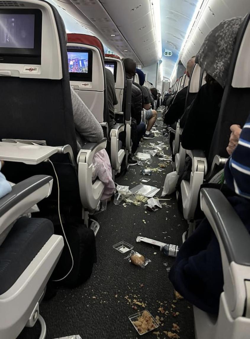 Hành khách Morrell Andrews đã chia sẻ hình ảnh về hiện trường hỗn loạn bên trong khoang máy bay lên Reddit. Anh cho biết khoảng hai tiếng sau khi cất cánh, họ "gặp phải một số cú xóc lớn và mọi thứ bay tứ tung (bao gồm cả một vài người!)."