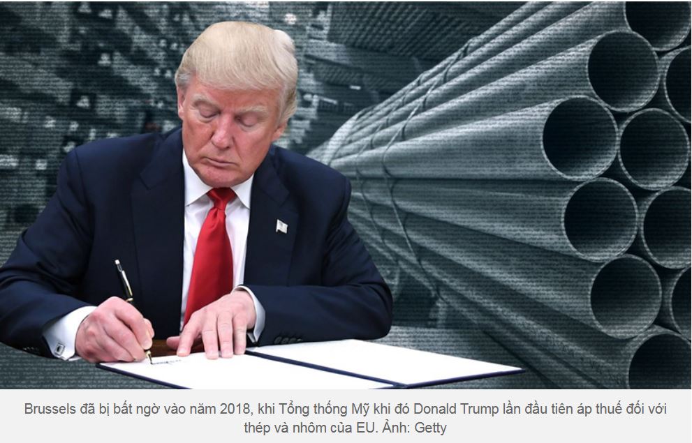 Vào năm 2018, ông Trump đă đánh thuế lên 6,4 tỷ euro thép và nhôm xuất khẩu từ châu Âu với lư do giảm thâm hụt thương mại, khiến EU không kịp trở tay.