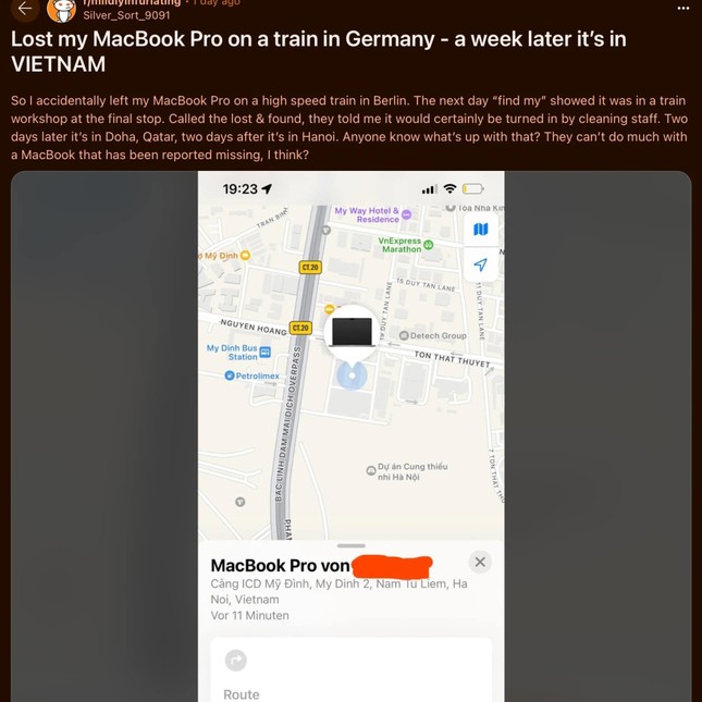 Old  Default Làm mất MacBook Pro tại Đức, kiểm tra Find My thấy thiết bị đang ở Hà Nội