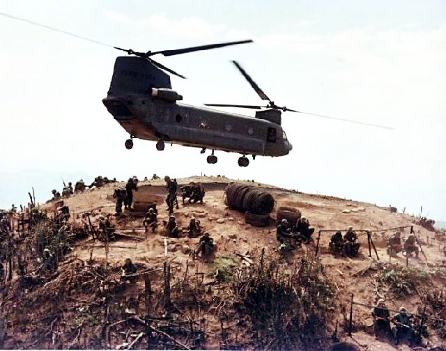 Khi các phi vụ tản thương của Thủy Quân Lục Chiến bắt đầu, trong lúc chiến trận, tôi đã phải nhìn và chú ý, rất nhiều lần, lòng dũng cảm của các phi công trực thăng. Họ bay các chiếc H-34 Choctaw cũ kỹ. Các chiếc trực thăng bay đến từ hướng đông, bay vòng và phía bên ngoài khu vực của chúng tôi, rồi cuối cùng, xuất hiện từ phía tây. Họ bay thấp xuống con sông khi đến gần vị trí chúng tôi, khi ấy họ phải lấy cao độ, rồi họ lại bay thật nhanh khi đến gần chỗ đáp mà chúng tôi đã lựa chọn. Họ điều khiển trực thăng trên đầu bãi đáp, dưới lằn đạn của những khẩu súng lớn và những khẩu súng cá nhân nhắm bắn vào họ. Họ phải giảm ga và đáp thật nhanh, mang các thương binh lên trực thăng thật nhanh, rồi cất cánh, quẹo trái và bay rời khỏi vùng ngay chỗ mà họ đã tới. Tôi cảm thấy thời gian mang các thương binh lên tàu quá ư là lâu, nhưng thật ra, chỉ mất chừng khoảng hai phút. Các phi vụ tản thương kéo dài khoảng ba giờ đồng hồ. Họ đã bị bắn dữ dội trong toàn thời gian ấy.