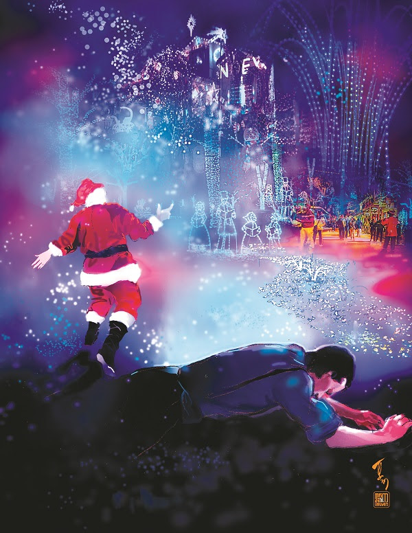 Ở Singapore, MC Hoàng Oanh cũng lên đồ cho bé Max mừng Giáng sinh. Nụ cười hạnh phúc hiện rõ trên mặt đôi vợ chồng son