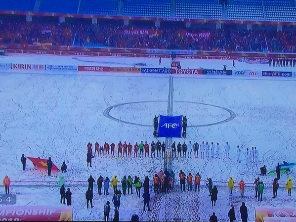 Trận đấu chung kết thật sự đáng tiếc và không đẹp mắt như các cổ động viên mong đợi, yếu tố chính là thời tiết. Thật khó hiểu, một giải bóng đá châu Á lại có thể tổ chức ở một nơi tuyết rơi dày như thế này.