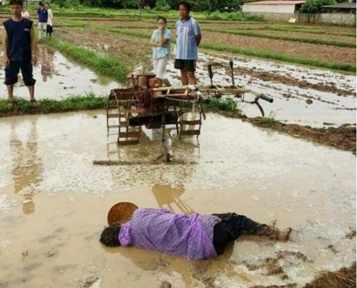 tôi thấy hình nằm này giống phụ nữ hơn vì còn cái nón lá nhưng báo trên mạng cho là người đàn ông Thái Lan: