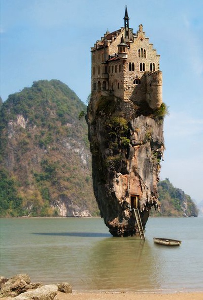01-Bức ảnh "The Castle House Island" (Hòn đảo hình tòa lâu đài) ở Dublin, Ireland chênh vênh trên một mỏm đá với một cầu thang gỗ nối xuống đáy biển. 02-Tuy nhiên không hề có địa điểm này trên thực tế. Nhiều độc giả suy đoán, nó được lấy nguyên mẫu từ vịnh Hạ Long, Việt Nam.