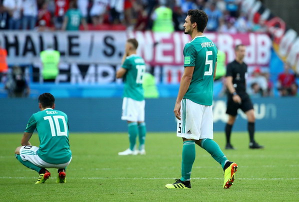 Đội Đức không phài là đội đầu tiên là đương kim vô địch bị loại ngay tại vòng bảng. Trước đó Pháp vô địch 1998 đã bị loại tại ngay vòng bảng 2002, Ý vô địch 2006 và bị loại 2010 và Tây Ban Nha vô địch 2010 bị rơi 2014, và tới Đức, vô địch 2014, rơi vòng bảng 2018.