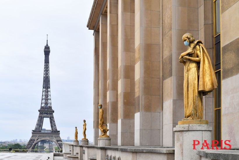 Khắp nơi đều đeo khẩu trang cho… tượng.