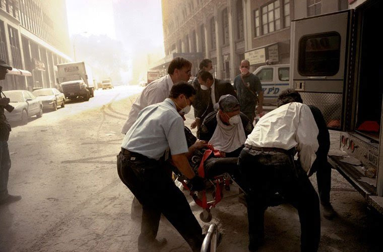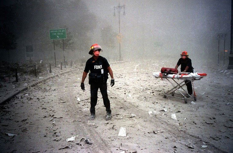 Phóng viên Steve McCurry ghi lại hình ảnh một đoàn lính cứu hỏa tiến vào Vùng đất số 0.