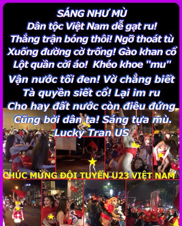 Tao thấy đội tuyển VN đá trận final hay hơn mấy trận trước nhiều dù điều kiện thời tiết không thuận lợi. Trái làm bàn của phe địch sẽ dễ dàng chụp nếu tuyết không làm lờ mờ sân banh. Trái gỡ huề của VN thì không thể tranh cãi được.