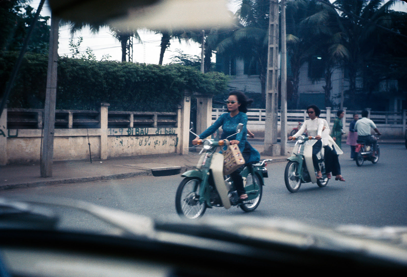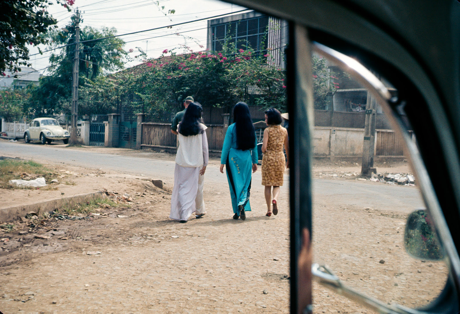 Những cô gái Sài Gòn đi phía sau một anh lính Mỹ.