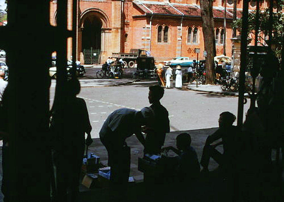 Góc đường Nguyễn Hậu, bên trái Bưu điện Trung tâm Sài Gòn và đối diện cửa hông nhà thờ Đức Bà
