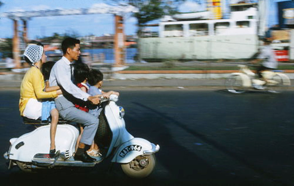 Đôi vợ chồng cùng hai con nhỏ trên chiếc máy ngày ấy chạy dọc giao lộ Trần Hưng Đạo-Phạm Ngũ Lão