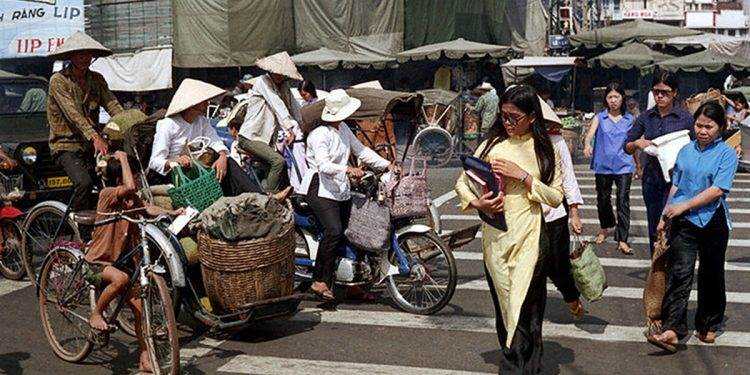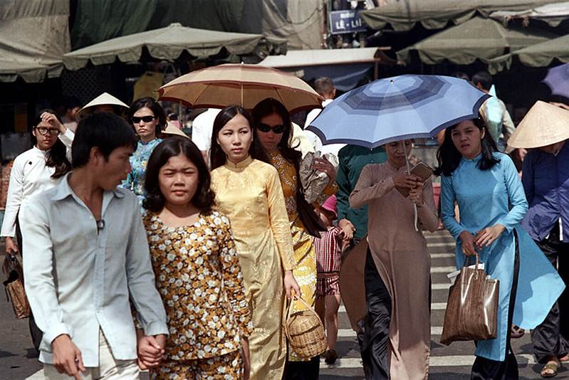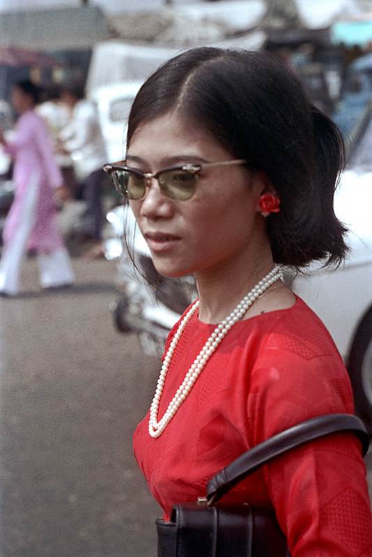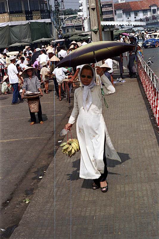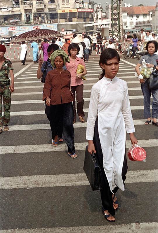 Cô gái với áo dài trắng láy xe trên đường phố Sài Gòn năm 1973