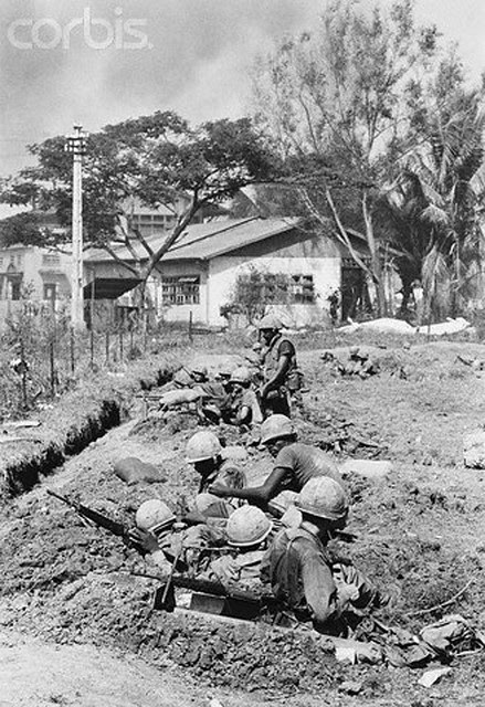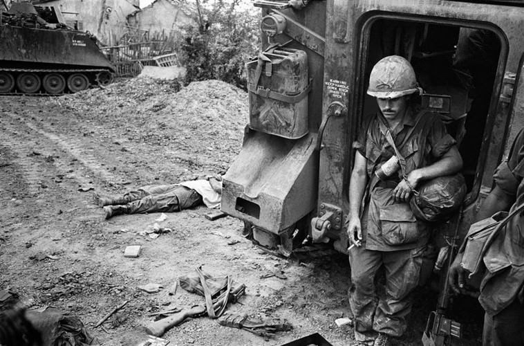 Lính Mỹ thuộc Sư đoàn bộ binh số 9 tác chiến trên đường phố Sài Gòn, trong chiến sự Mậu Thân 1968. Ảnh: Philip Jones Griffiths/Magnum.