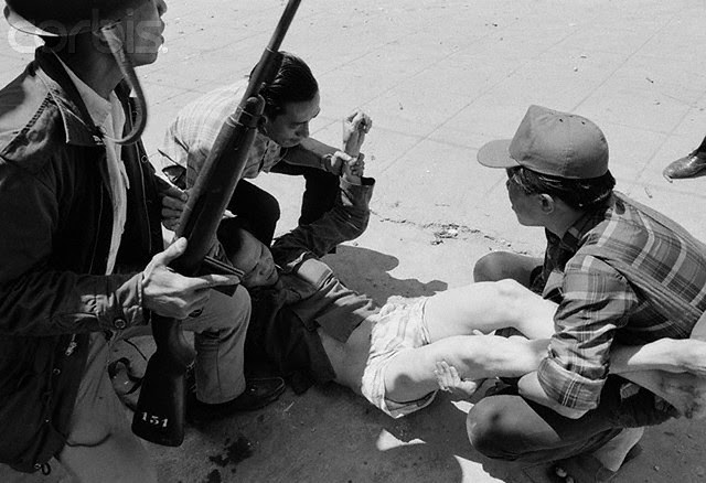 Một phụ nữ bị thương do giao tranh trên đường phố Sài Gòn. Ảnh: Philip Jones Griffiths/Magnum.