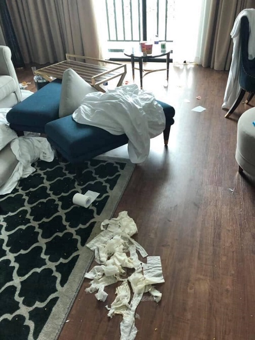 "Bãi chiến trường rác" sau khi trả phòng khách sạn ở khu nghỉ dưỡng ở Hạ Long...