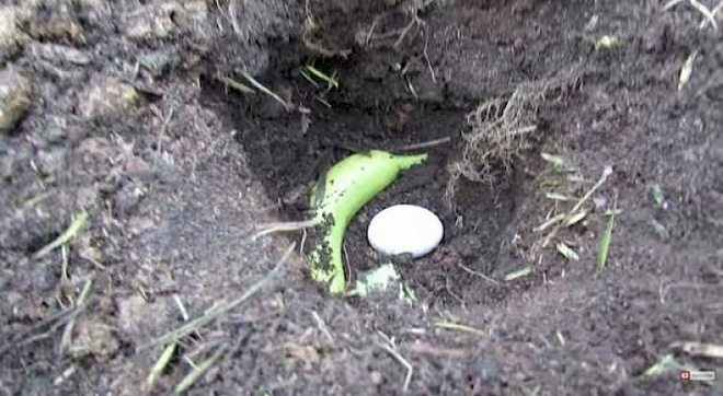 Phương pháp này sử dụng theo nguyên lý là chờ cho đến khi trứng và chuối bị mục rữa, chất dinh dưỡng sẽ hòa với đất và thẩm thấu từ rễ lên để nuôi cây phát triển.