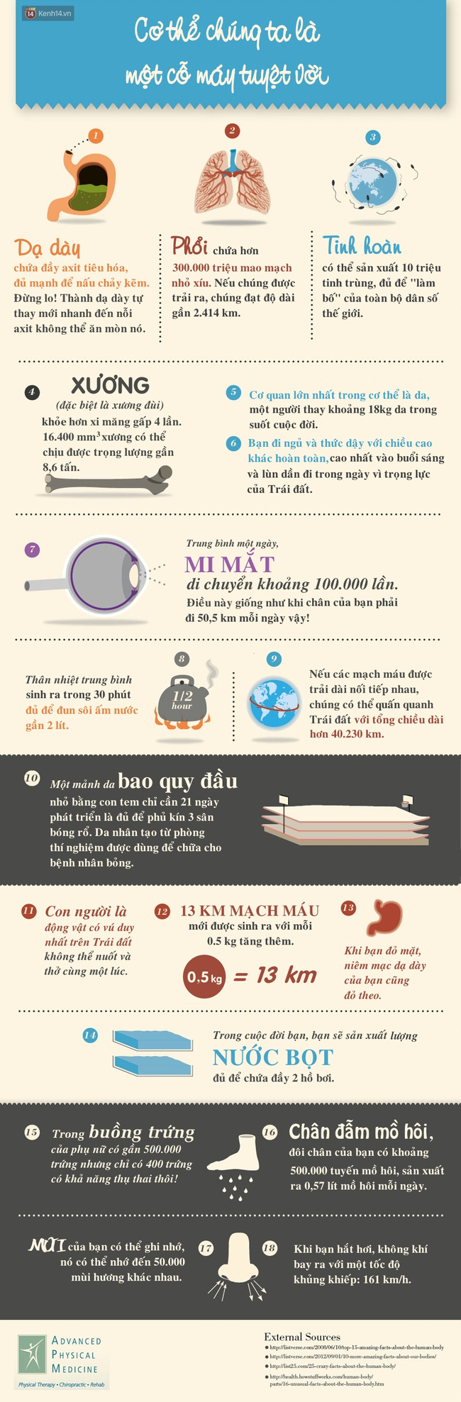 Nhưng bạn có thực sự hiểu về "sự kì diệu" của cơ thể của chính mình? Những sự thật thú vị sau đây về cơ thể chắc chắn sẽ phải làm bạn bất ngờ đấy! Hãy luôn nhớ yêu quý,trân trọng và chăm sóc cơ thể của bạn mỗi ngày nhé!