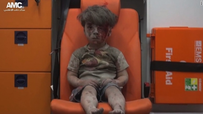 Trước đây, thế giới từng rúng động với hình ảnh em bé tị nạn Syria nằm chết gục bên bờ biển. Nay, hình ảnh một bé trai khoảng 5 tuổi, người Syria còn sống nhưng bị thương, người đầy bụi bặm hòa lẫn máu; bé không khóc nhưng ánh nhìn vô hồn, tay đặt trên đùi, lặng lẽ chờ đến lượt chữa bệnh đã thay hàng nghìn lời nói, lột tả được sự khốc liệt của những cuộc giao chiến đẫm máu tại TP. Aleppo, tỉnh phía Bắc Syria. Em bé tên Omran Daqneesh, bị thương trong cuộc giao tranh tại TP. Aleppo ngày 17/8.