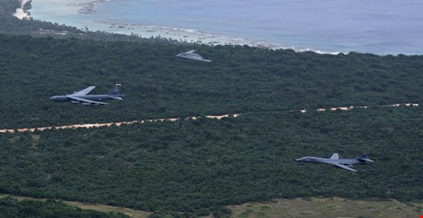Mỹ triển khai ba máy bay ném bom chiến lược B-52 Stratofortress, B-1 Lancer và B-2 Spirit từ căn cứ không quân Andersen ở đảo Guam, đến tập trận ở biển Đông và vùng Đông Bắc Á.