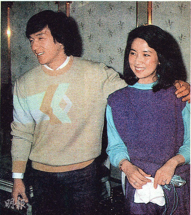 Nhẫn quá to, cô đành lồng nhẫn vào ngón tay cái. Diễn viên xinh đẹp chính thức thành vợ của Thành Long. Thời gian này, khi tin tức hai người kết hôn đă khiến hai fan người Nhật Bản tự sát.