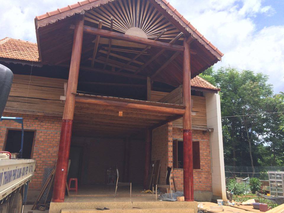 Phần dưới xây dựng bằng bê tông cốt thép đã bị đập bỏ sát móng, tan tành; phần gác trên dựng bằng gỗ bị tháo dỡ với cả chục cột gỗ đường kính khoảng 20-30cm bị vứt ngổn ngang, cả trăm tấm ván lát sàn chất thành nhiều đống trong khuôn viên khu đất 500m2 và chưa được chủ nhà mang đi.