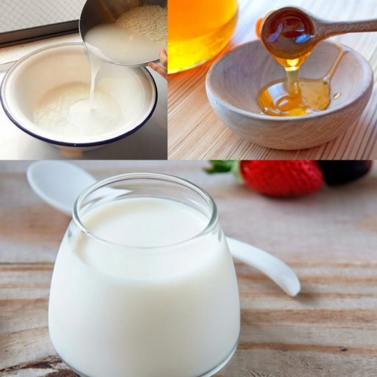 B2: Thêm 1 muỗng canh sữa nóng và 1 muỗng mật ong. Trộn đều các nguyên liệu với nhau.