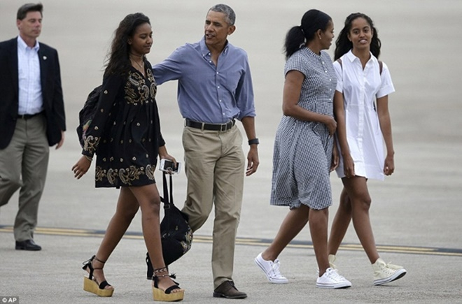 Trong khi trước đây ông Obama thường sánh bước thân mật bên con gái lớn thì trong lần trở về này, Tổng thống Mỹ bước đi bên con gái út Sasha, còn Malia đi sát mẹ. Có lúc ông Obama quay lại nói điều gì đó với Malia, còn cô thì đáp lại bằng nụ cười gượng gạo.
