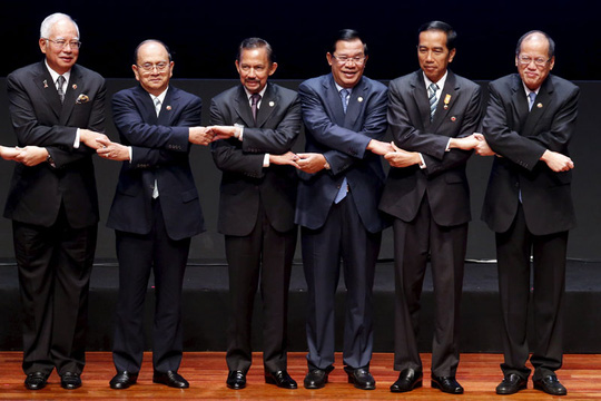 Thủ tướng Hun Sen (thứ 3 từ phải qua) cho rằng các nước liên quan đến tranh chấp nên đàm phán trực tiếp với Trung Quốc để tìm giải pháp. Ảnh: Reuters