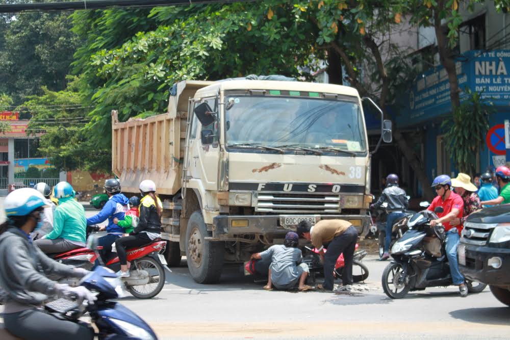 Tài xế kịp thắng gấp, tuy nhiên xe máy và hai nạn nhân vẫn bị kéo lê đi một đoạn. Khi mọi người chạy ra, chứng kiến xe máy nằm gọn dưới gầm xe, còn 2 nữ sinh lồm cộm bò ra, chỉ bị thương tích nhẹ.