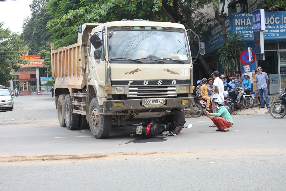 Lúc này, chiếc xe tải BKS 60C – 090.84 do tài xế Nguyễn Quốc Nam (25 tuổi, ngụ TP Biên Hòa) điểu khiển chạy cùng chiều từ phía sau lao tới "nuốt" cả 2 nữ sinh cùng xe máy vào gầm phía trước.