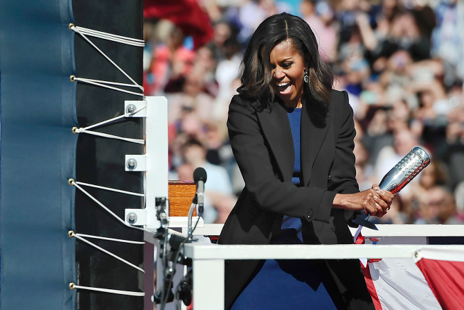 Đệ nhất phu nhân Mỹ Michelle Obama trong một lễ hạ thủy tàu tại Groton năm 2015. Ảnh: AP
