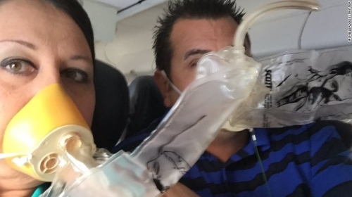 Chiếc máy bay bắt đầu rung lắc và mặt nạ dưỡng khí bung xuống khi máy bay dần hạ độ cao.