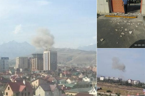 Các hình ảnh trên mạng xã hội Kyrgyzstan cho thấy nhiều mảnh bê tông vỡ ở sứ quán và cột khói bốc cao.