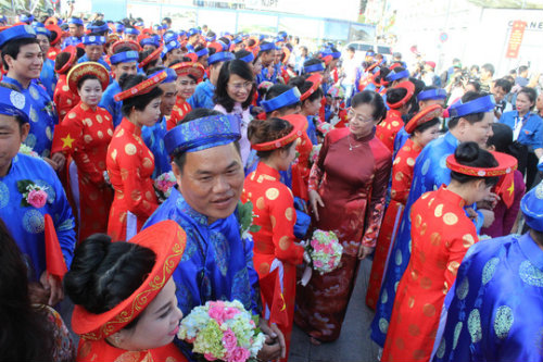 Sáng 2/9, Trung tâm Hỗ trợ Thanh niên công nhân (Thành Đoàn TPHCM) tổ chức chương trình Lễ cưới tập thể năm 2016 cho 100 đôi uyên ương đúng vào dịp Quốc khánh nước Cộng hòa xã hội chủ nghĩa Việt Nam.